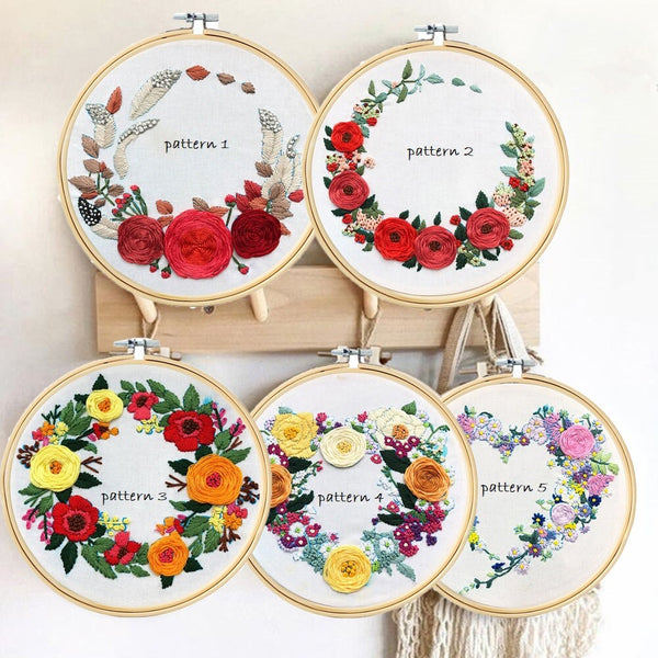 Full Embroidery Kit for Beginners, Floral Wreath Pattern