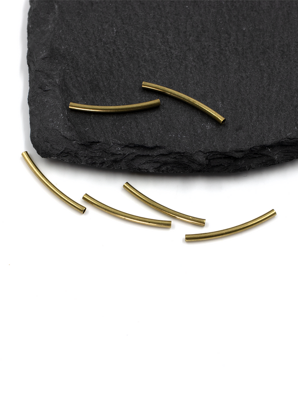 50 x Raw Brass Curved Tube Spacer Beads, 25x2mm (C0675)
