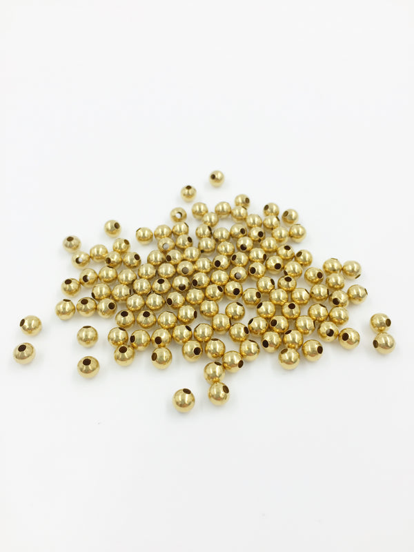 100 x Seamless Polished Raw Brass Ball Spacer Beads, 4mm (C0633)