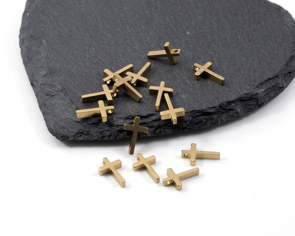 8 x Raw Brass Solid Cross Charms, 12x8 mm (C0416)