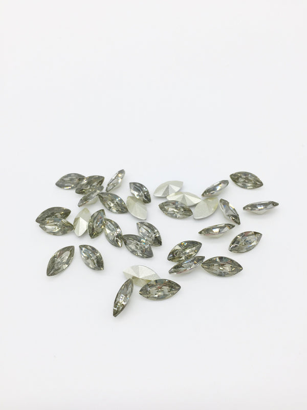 24 x 6x12mm Black Diamond Crystal Navette Rhinestones, Foiled Back (2255)