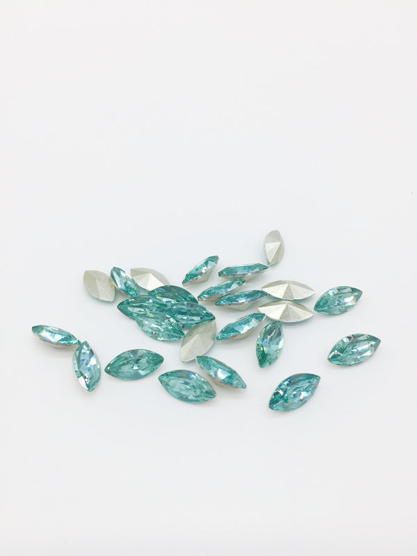 24 x 6x12mm Light Aqua Blue Crystal Navette Rhinestones, Foiled Back (2265)