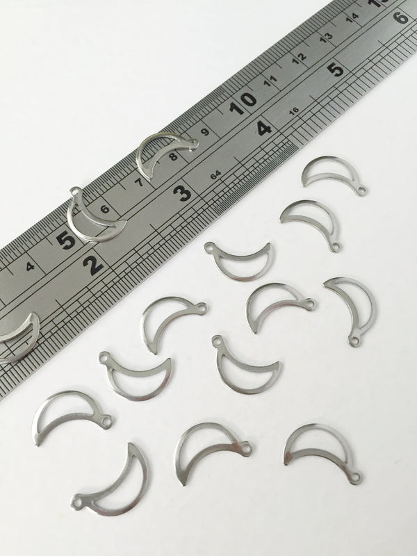 12 x Stainless Steel Openwork Crescent Moon Charms, 15x9mm