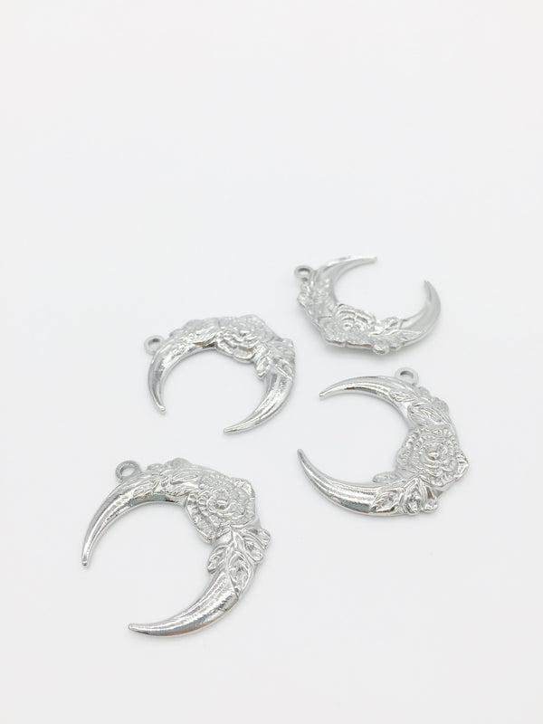1 x Stainless Steel Floral Moon Pendants, 31x28mm (1257)