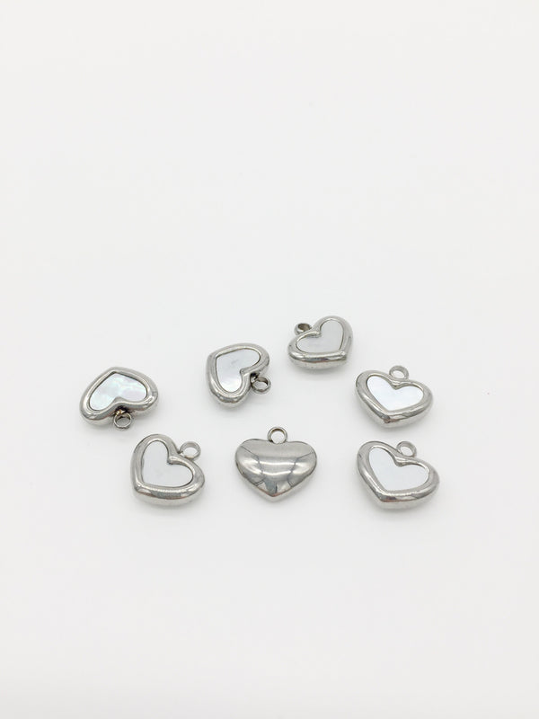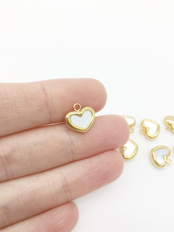 18K Gold Plated Stainless Steel Heart Charms with Mother of Pearl Inlay, 12x11mm (2156G)