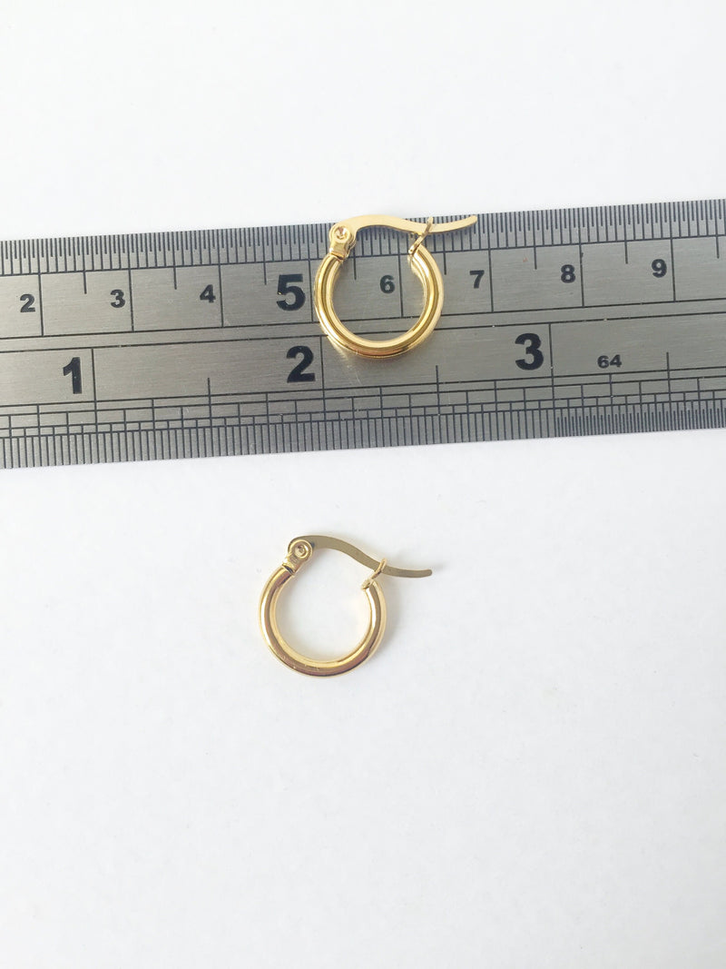 1 pair x Gold Plated Stainless Steel Creole Earring Hoops Blanks, 15mm (0770)