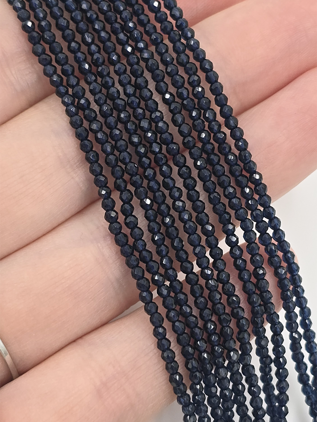 1 strand x 2mm Sapphire Blue Micro Faceted Crystal Beads (4125)