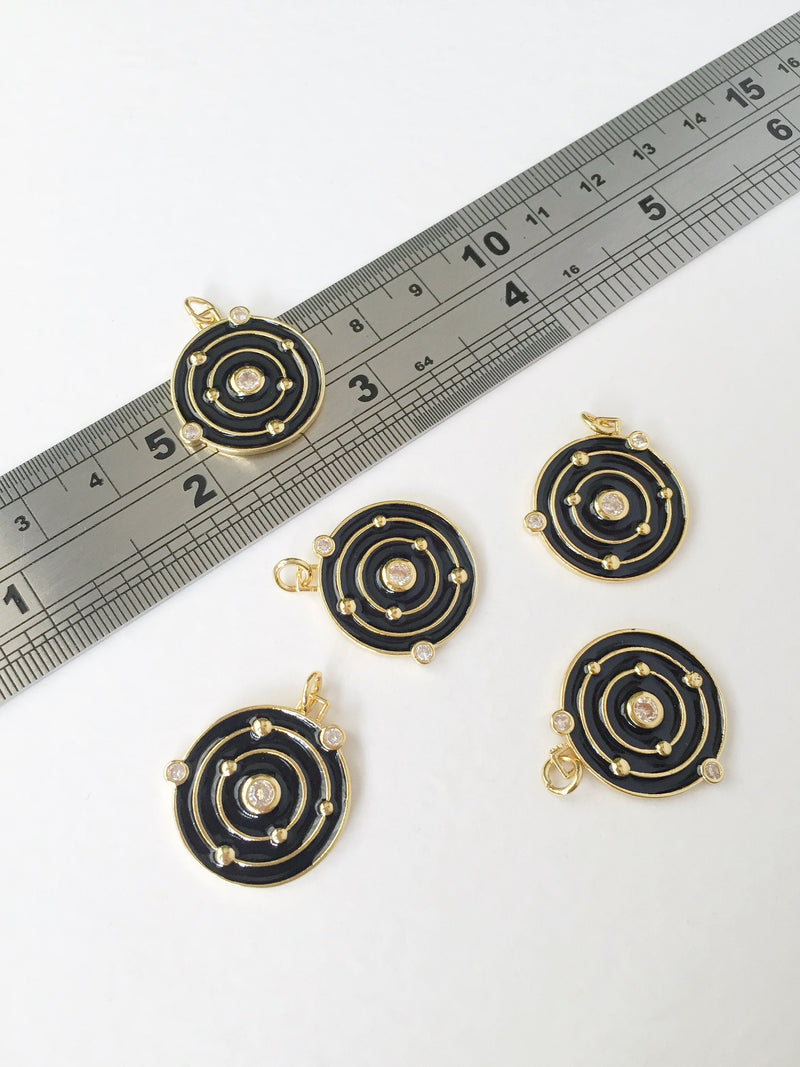 ✨ 16K gold plated solar system pendant with black enamel and cubic zirconia