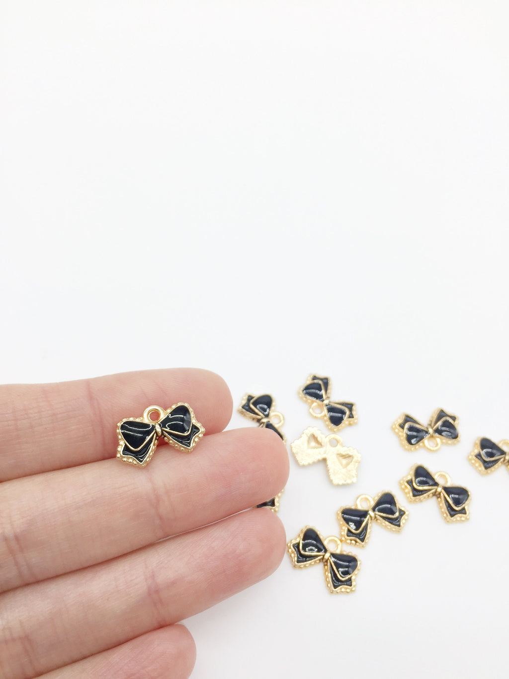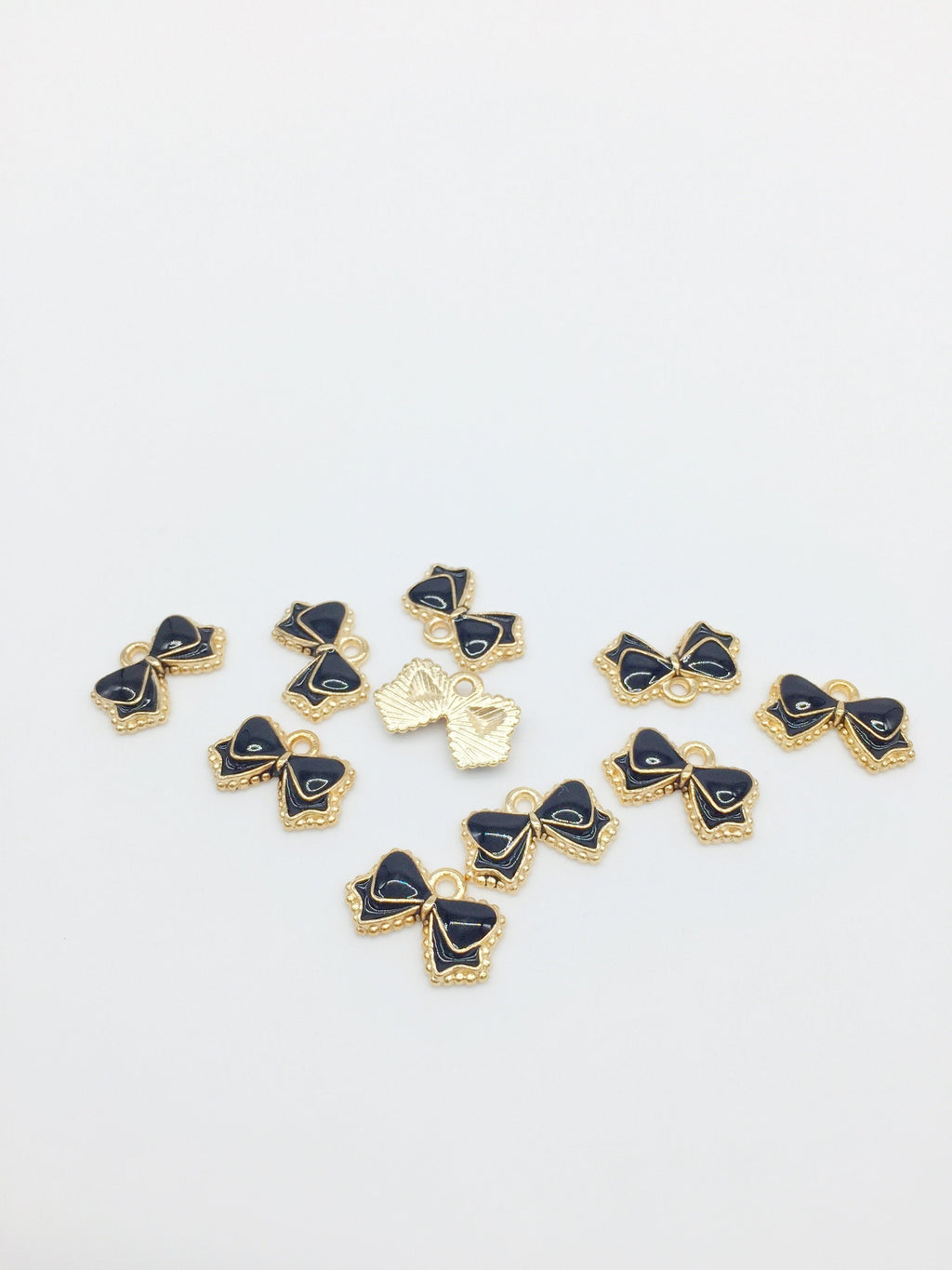 ✨ Black enamel coated bowknot charms, champagne gold base