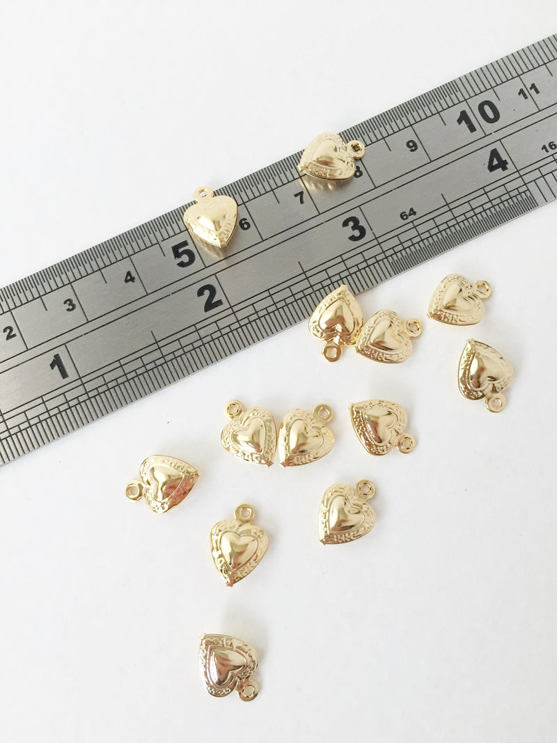 10 x Gold Plated Stainless Steel Puffy Heart Charms, 12.5x9mm (0487)
