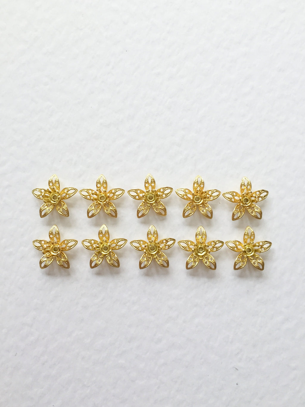 ✨ Beautiful yellow gold tone filigree brass multi petal flower bead caps.