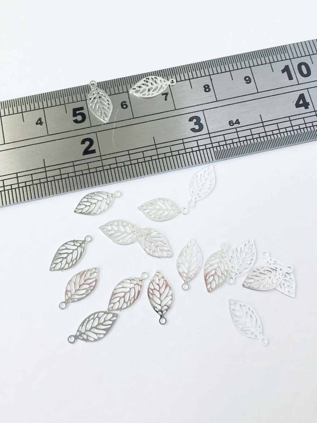10 x Tiny Silver Plated Filigree Leaf Pendants, 11.5x5.5mm (0467)