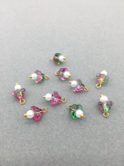 ✨ Trumpet flower shaped charms with faux pearl centre and gold tone brass loops