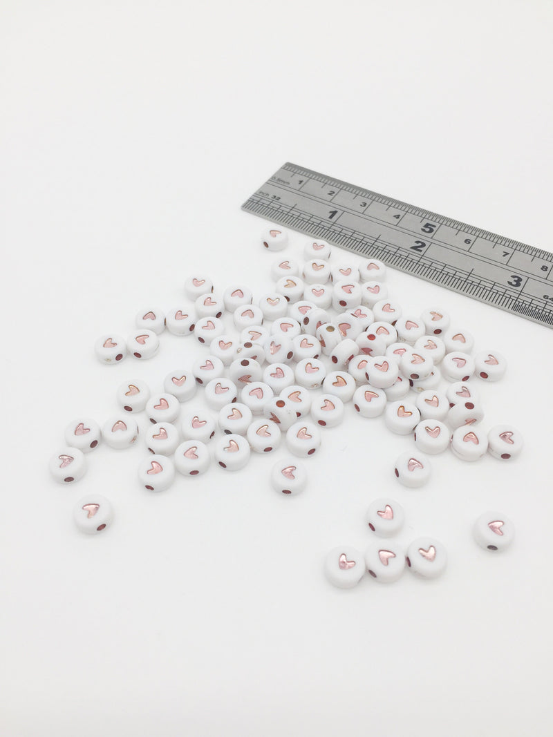 ✨ Acrylic heart beads, white with rose gold heart
