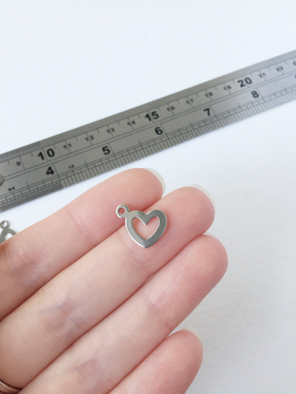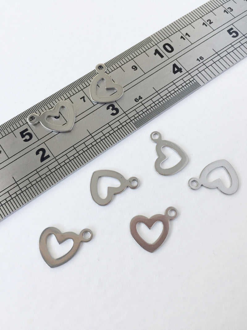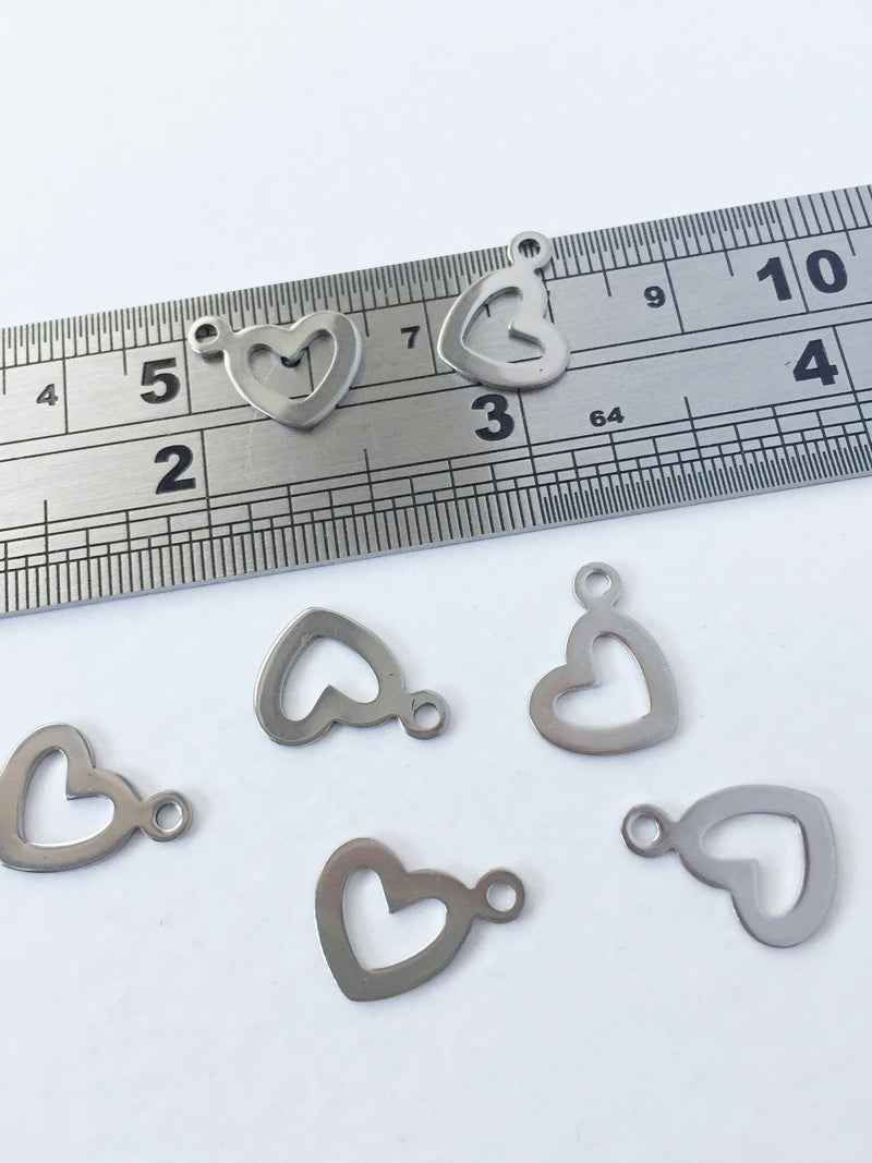 ✨ Small stainless steel heart charms, sturdy with smooth edges.