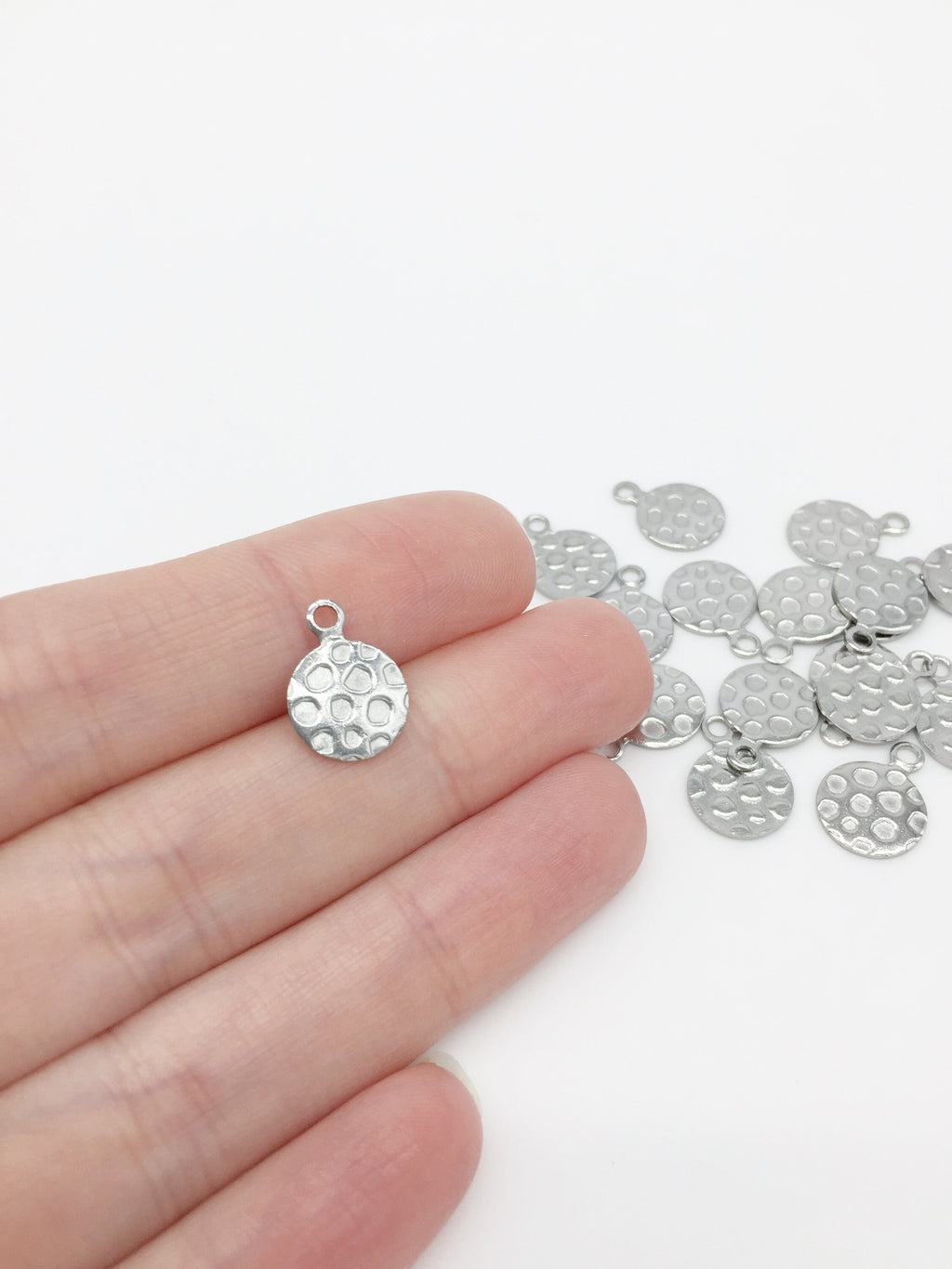 ✨ Stainless steel charms with textured pattern