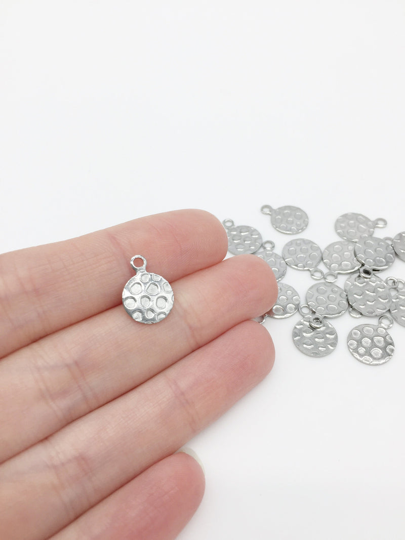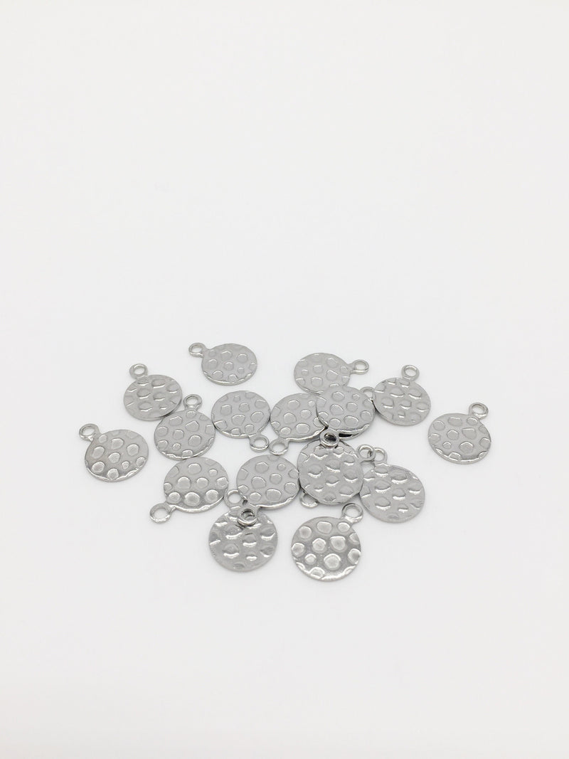 16 x Textured Round Stainless Steel Charms, 14x11mm