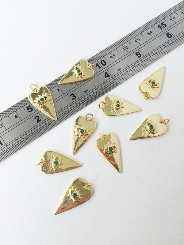 ✨ 18K gold plated heart charm with emerald green cubic zirconia, supplied with a jump ring