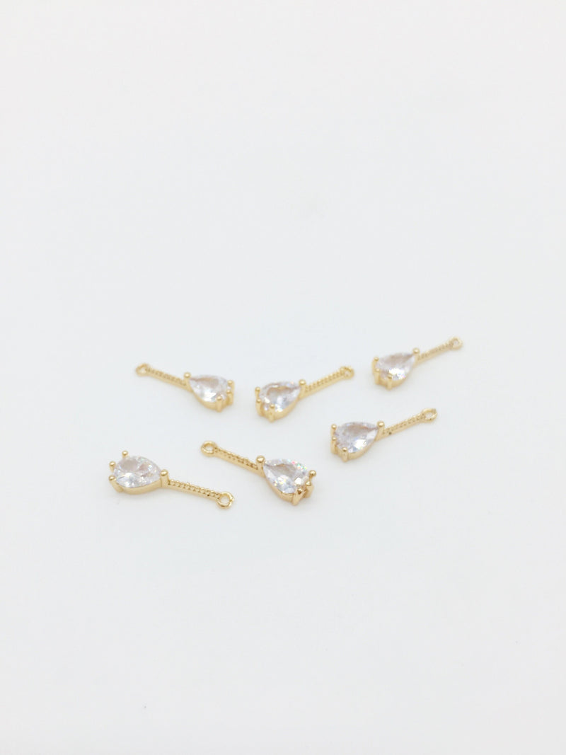 1 x 24K Gold Plated Pear Cut Cubic Zirconia Bar Charms, 18x5mm (1129)