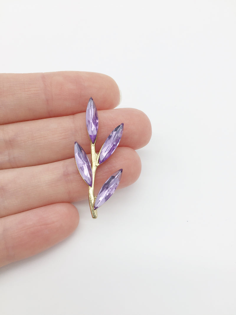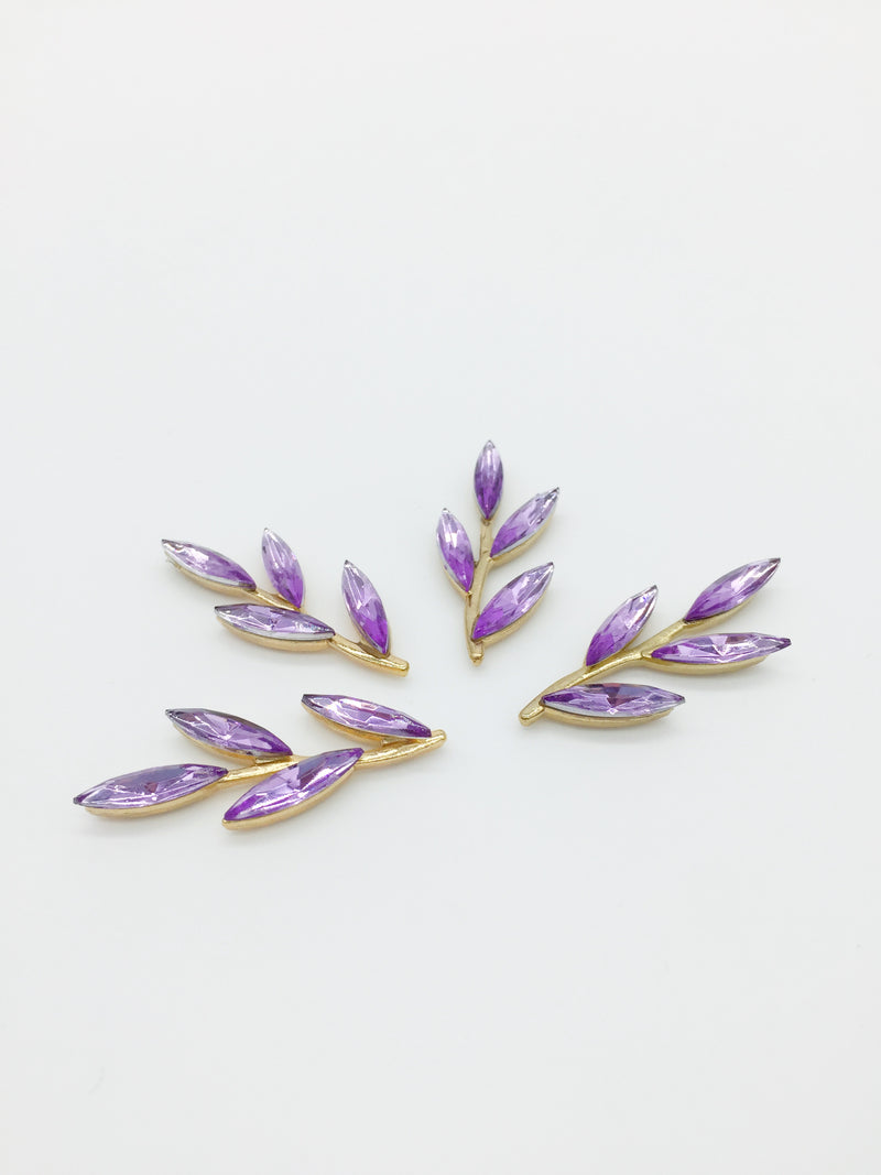 2 x Gold Tone Purple Crystal Branch Embellishments, 35x15mm