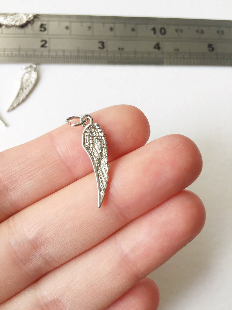 ✨ Detailed wing charms, made of platinum plated brass, come with a jump ring