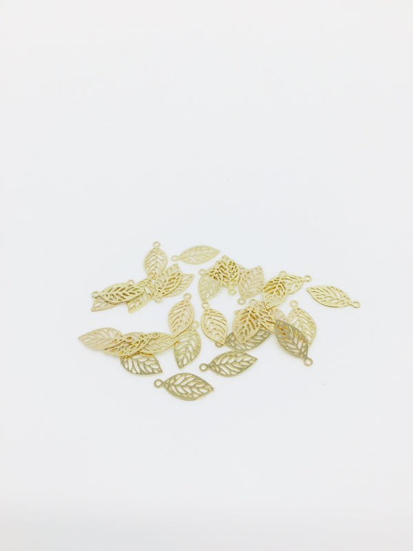 4 x 18K Gold Plated Filigree Leaf Pendants, 22x18mm (0104)
