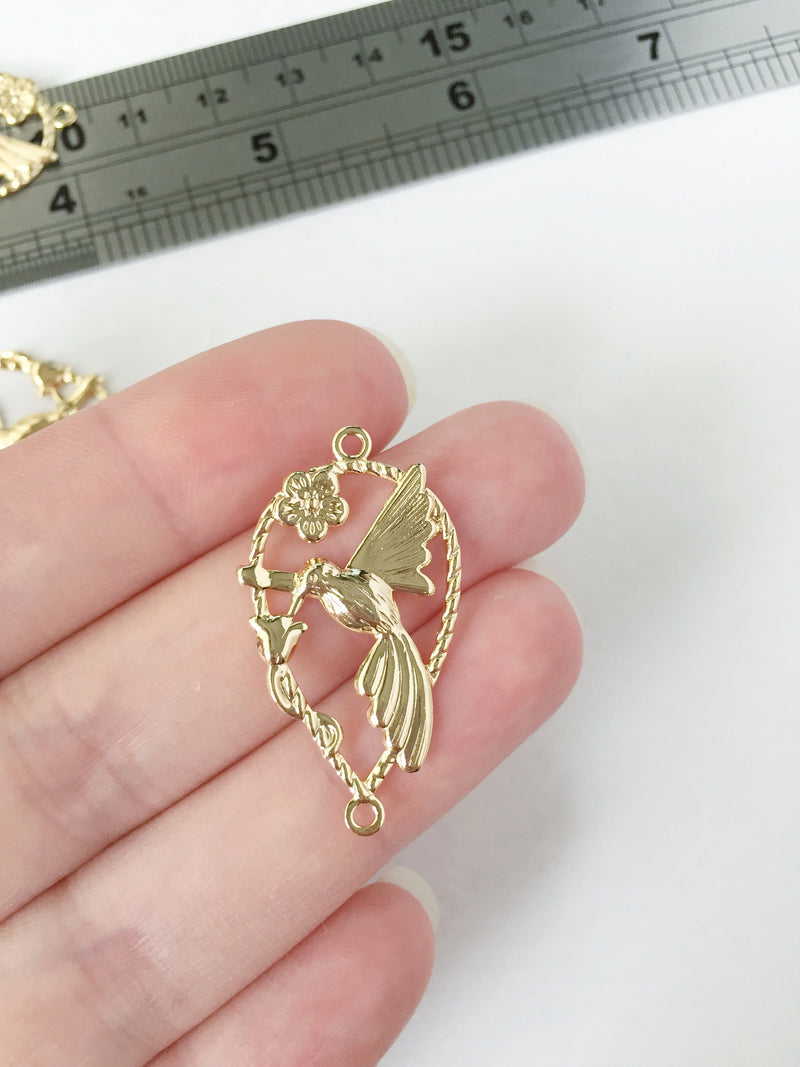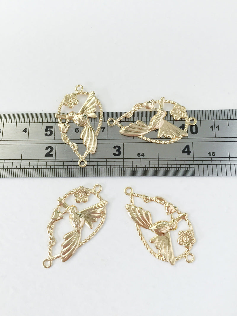 2 x Gold Plated Bird Earring Connectors, 34x19mm Bird Earring Links (0189)