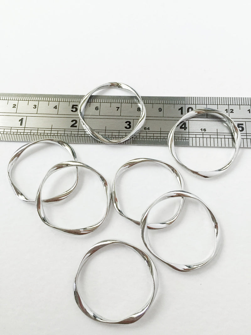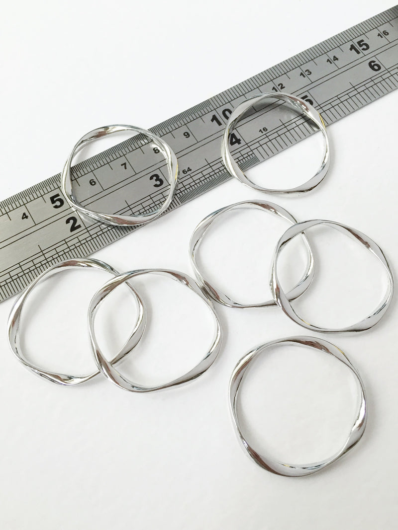 4 x Rhodium Plated Wavy Circle Connectors, 32mm (0620)