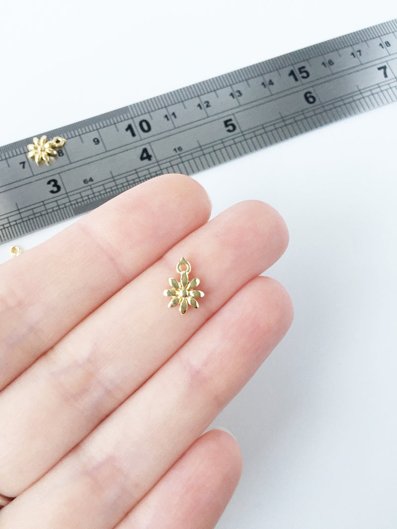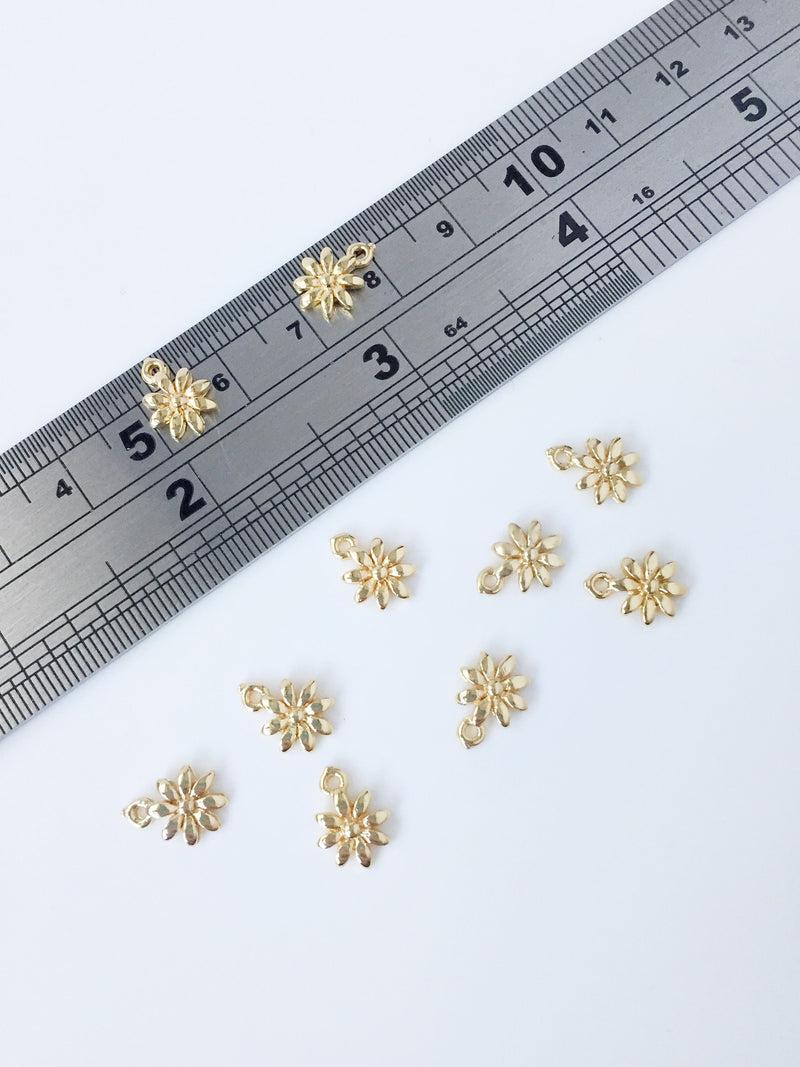 2 x Tiny 18K Gold Plated Flower Charms, 10.5x8mm (2238)