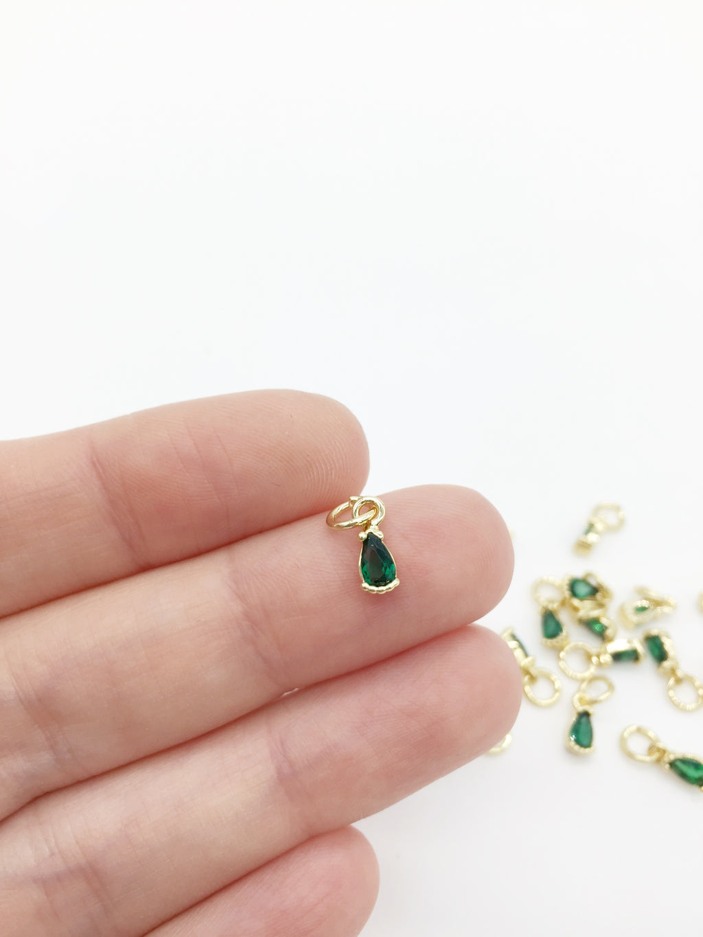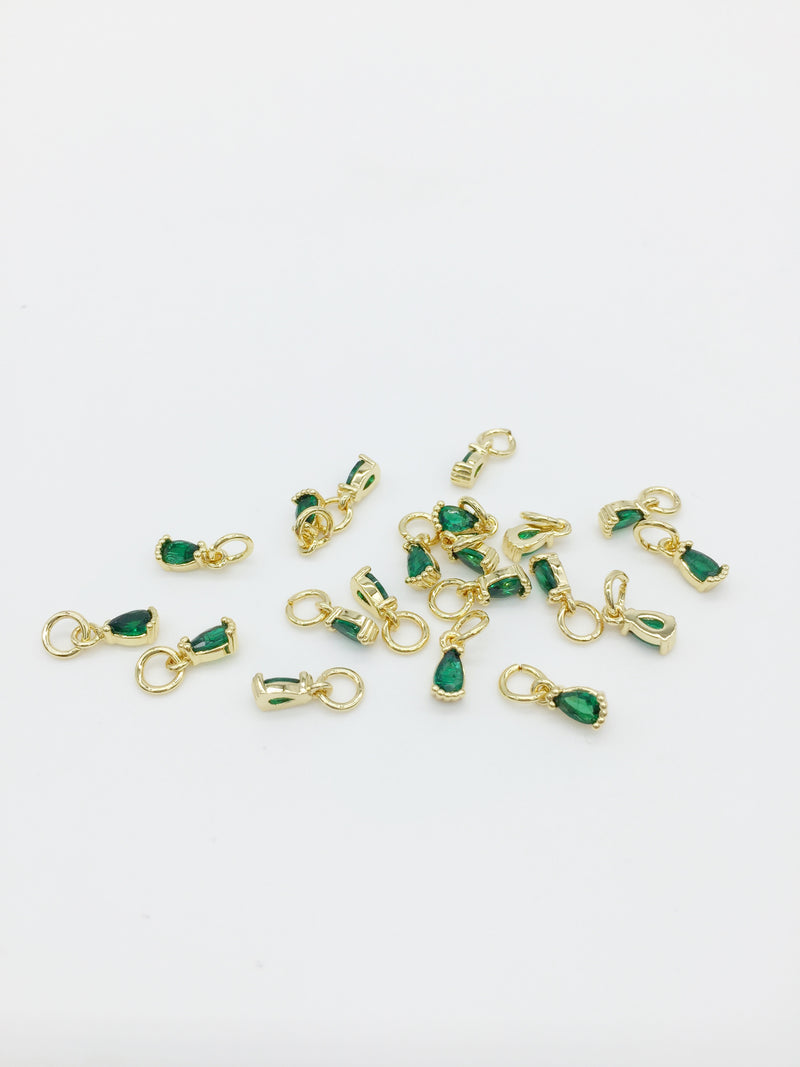 ✨ Emerald green pear cut cubic zirconia charms, 18k gold plated brass; each charm is supplied with a jump ring.