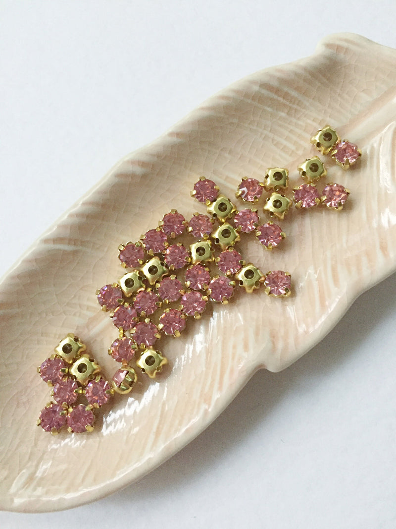 48 x Light Pink Glass Rhinestones in Gold Sew-on Setting, 4mm or 5mm