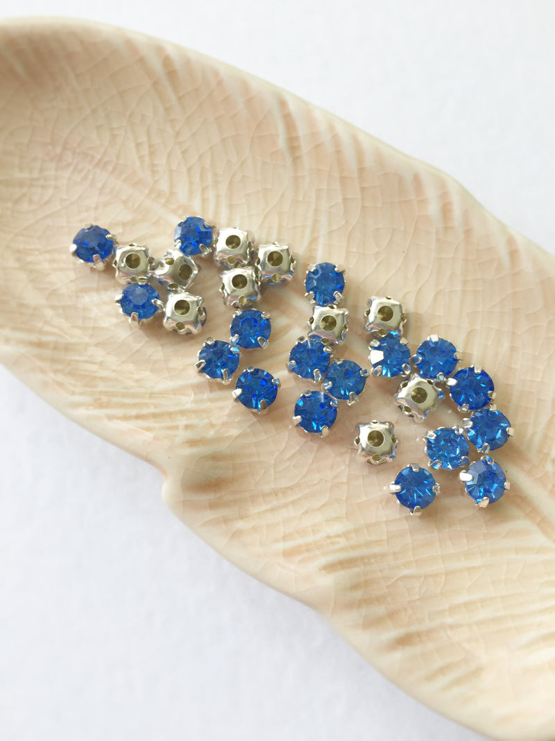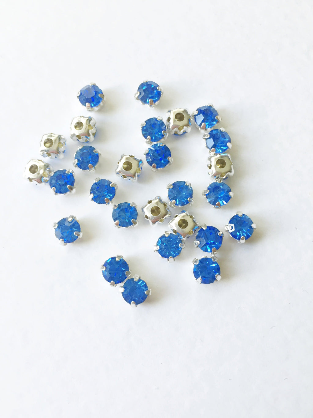 ✨ Light sapphire glass rhinestones in silver tone sew-on setting