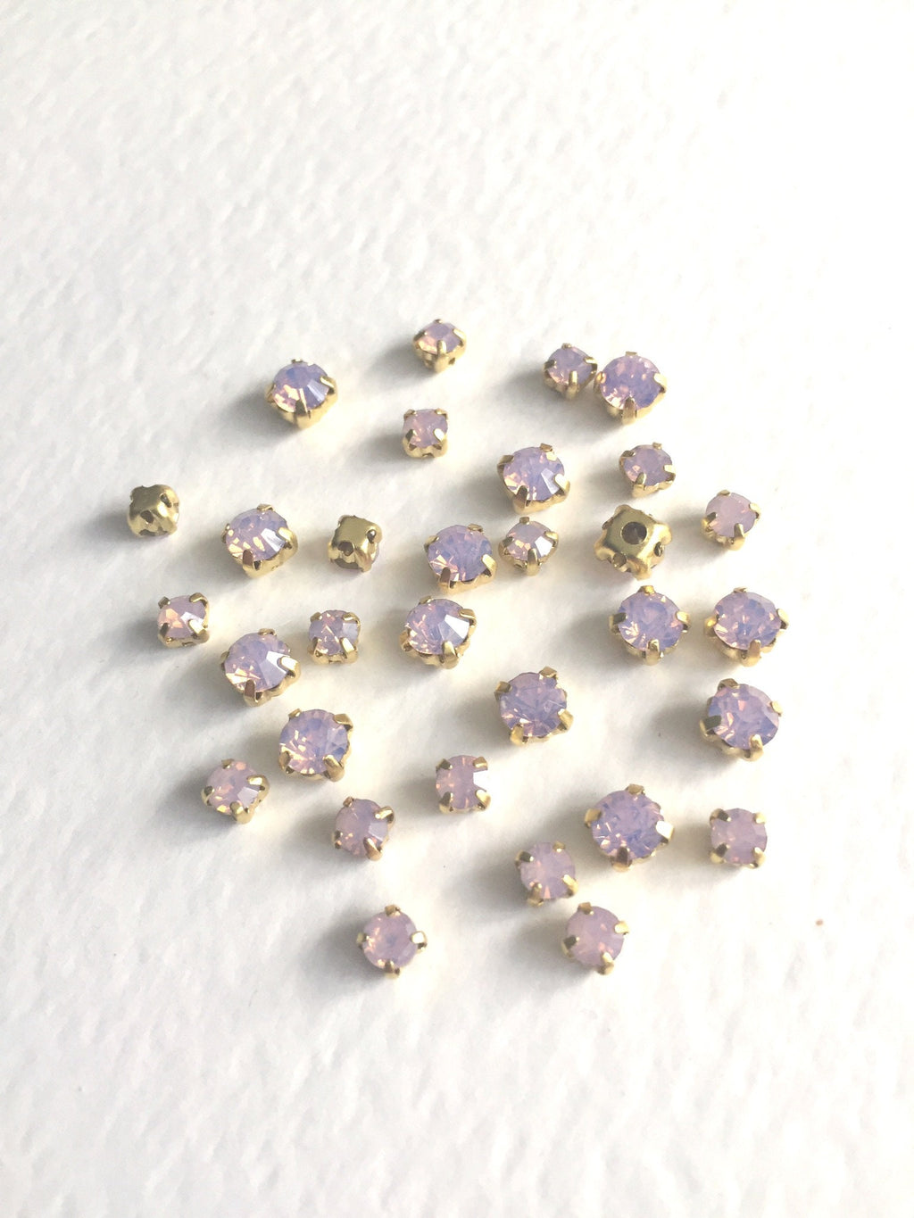 48 x Pink Opal Rhinestones in Gold Sew-on Setting, 4mm or 5mm
