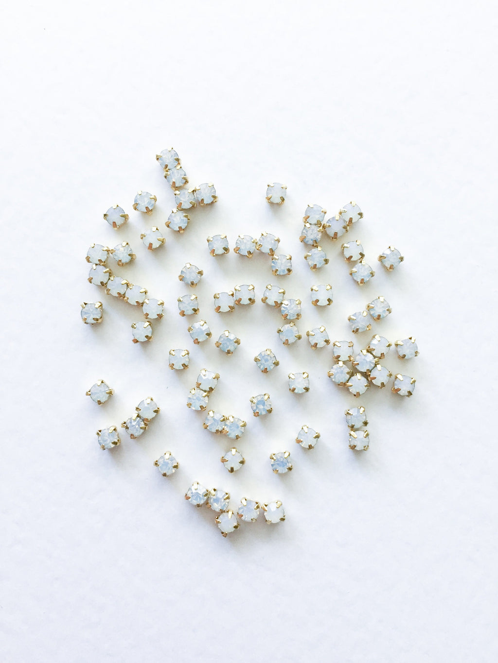 ✨ White Opal Glass Rhinestone in Sew-on Gold Tone Claw