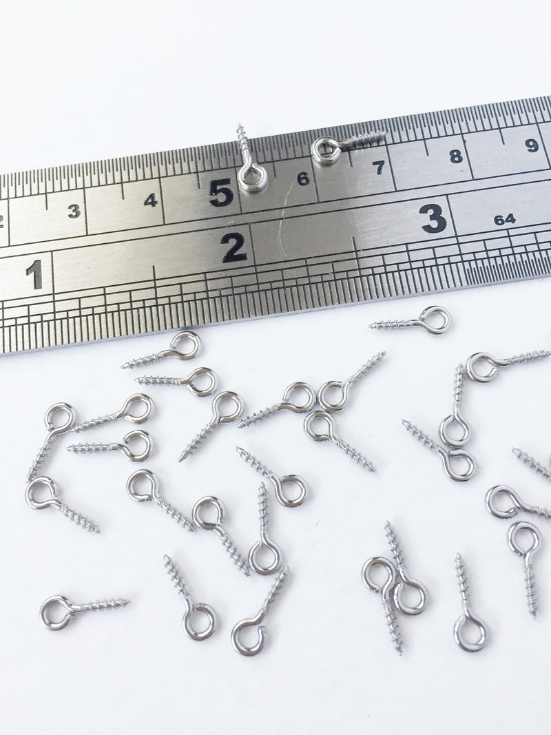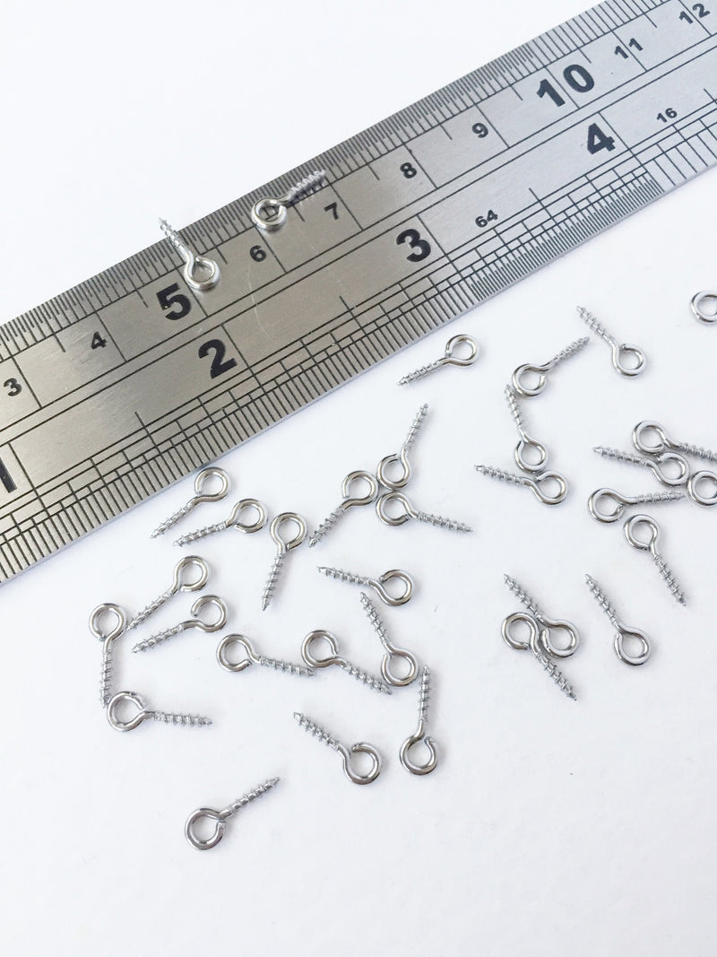 50 x Stainless Steel Screw Bails Silver for Top Drilled Beads, 10x4mm(0562)