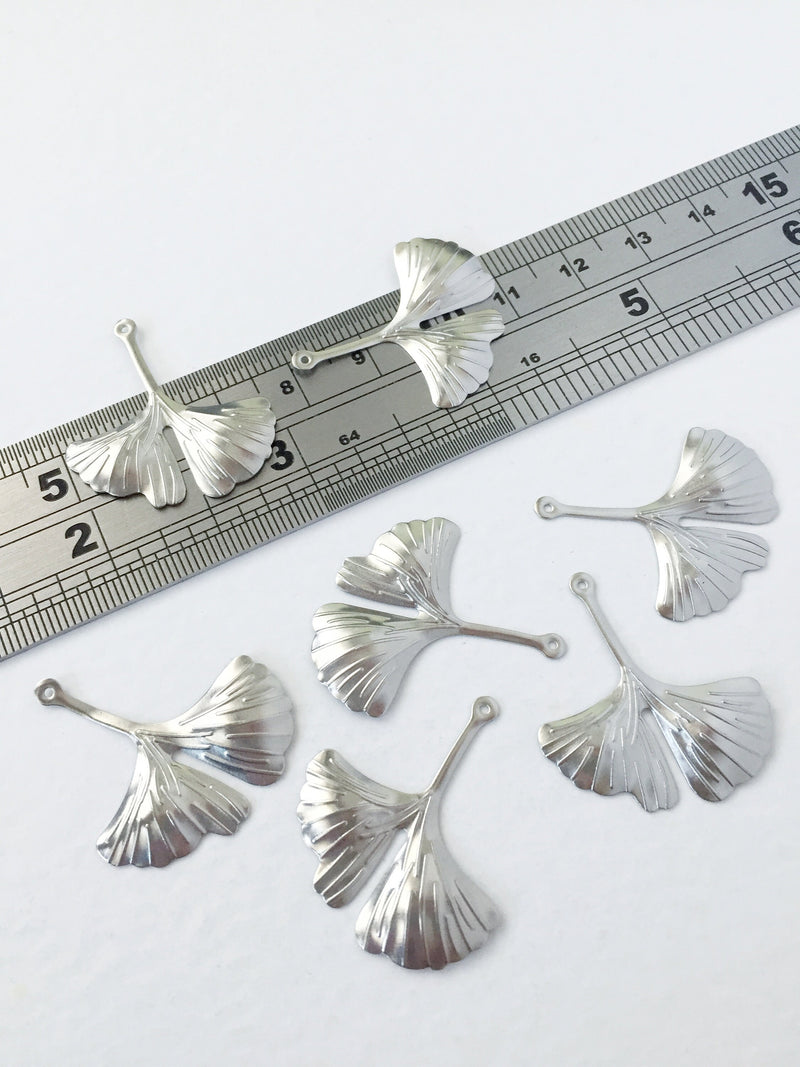 6 x Stainless Steel Ginkgo Leaf Pendants, 30x26mm (0798)