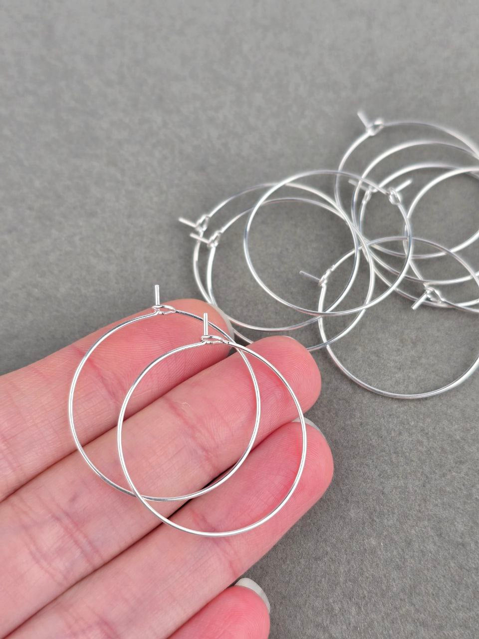 925 Sterling Silver Plated Steel Earring Hoop Wire, 30mm