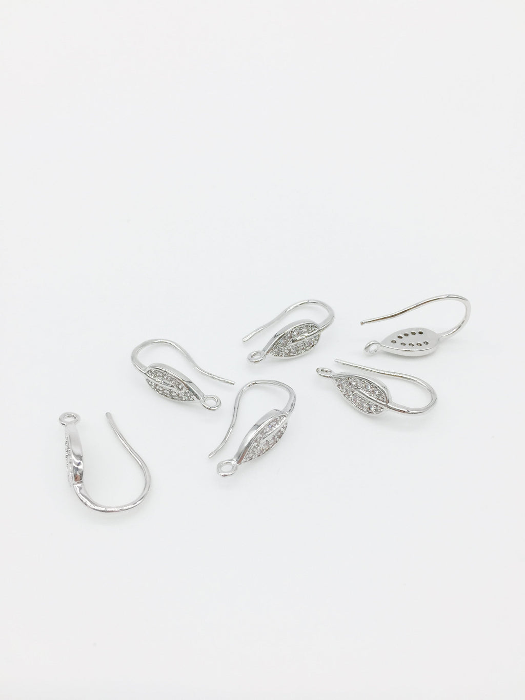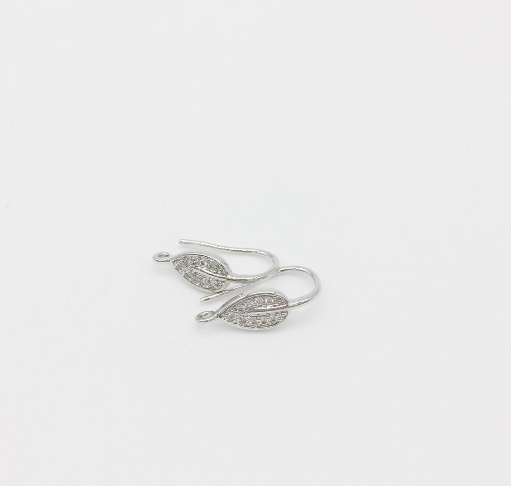 Rhodium plated micro pave cubic zirconia leaf earring hooks, perfect for adding extra sparkle to handmade earrings