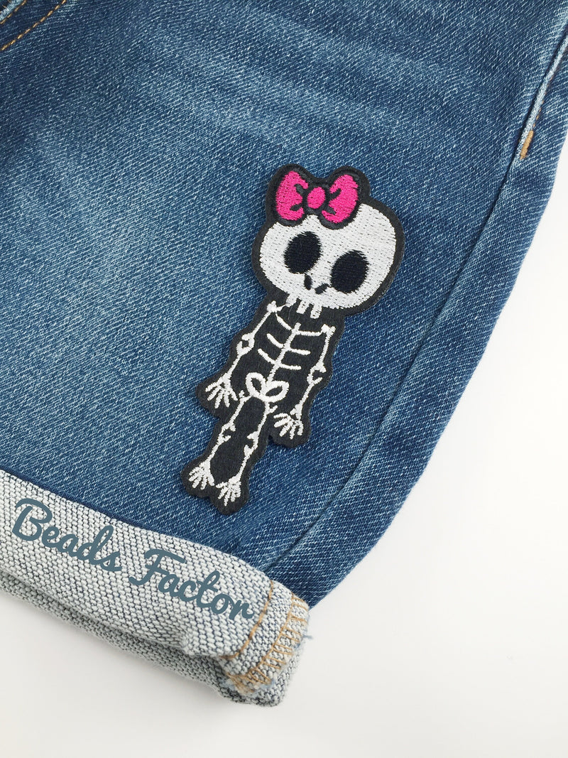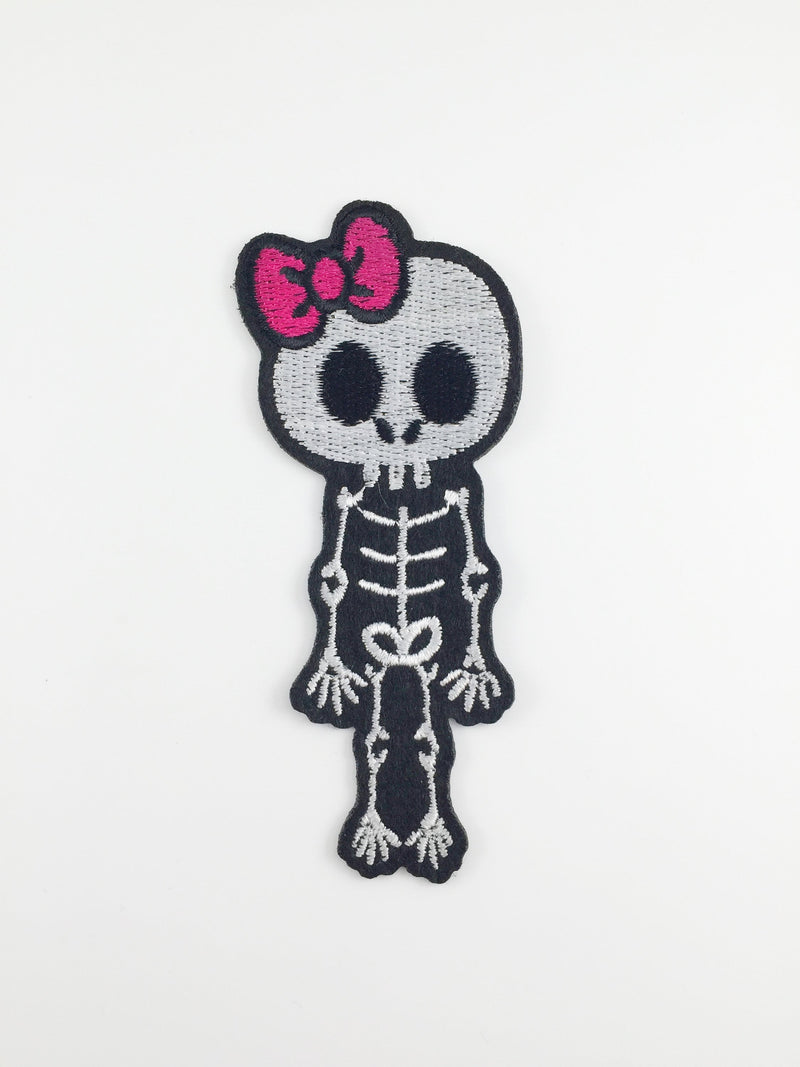 Skeleton Girl Iron-on Patch, Embroidered Skeleton Applique