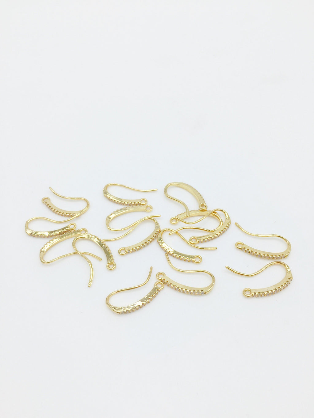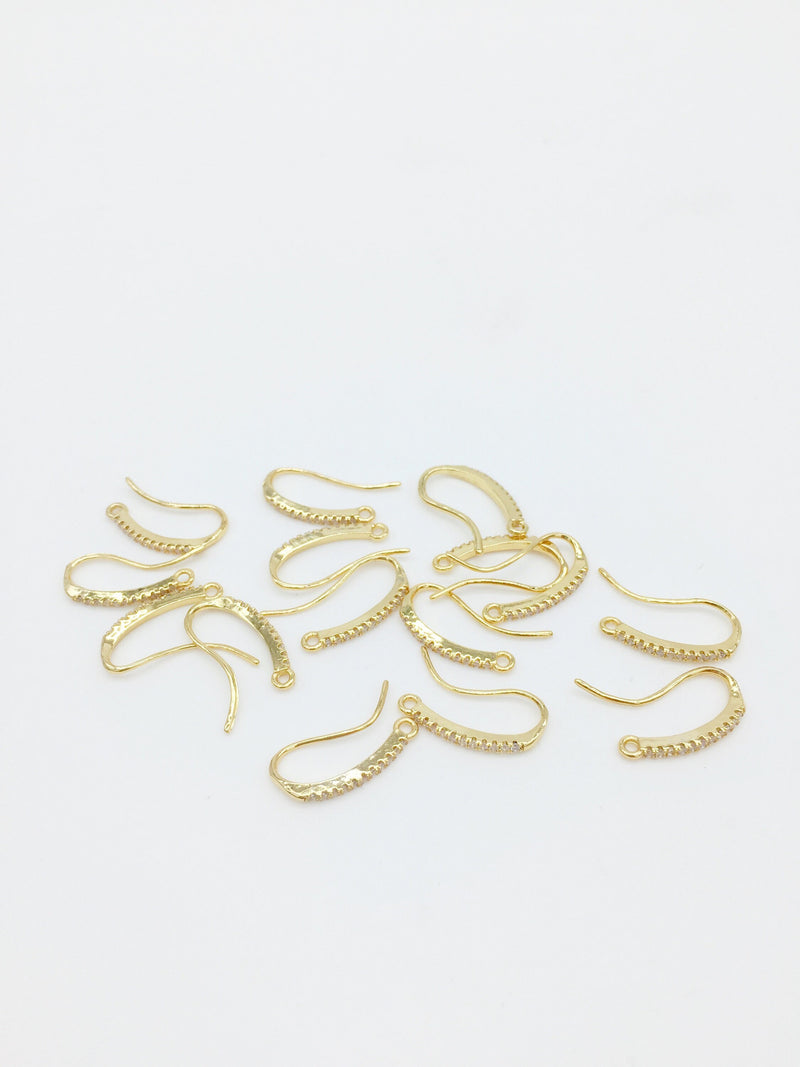 18K gold plated micro pave cubic zirconia earring hooks, perfect for adding extra sparkle to handmade earrings