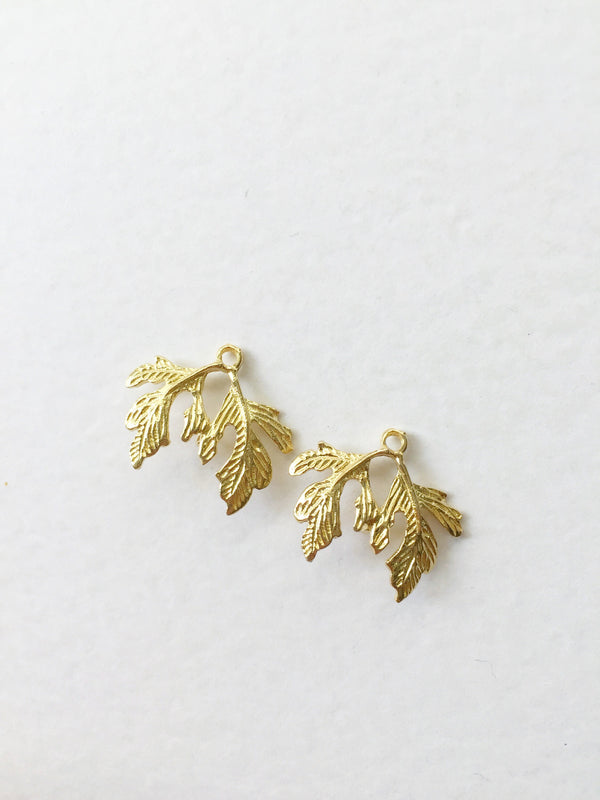 4 x Champagne Gold Double Leaf Charms, 22x18mm
