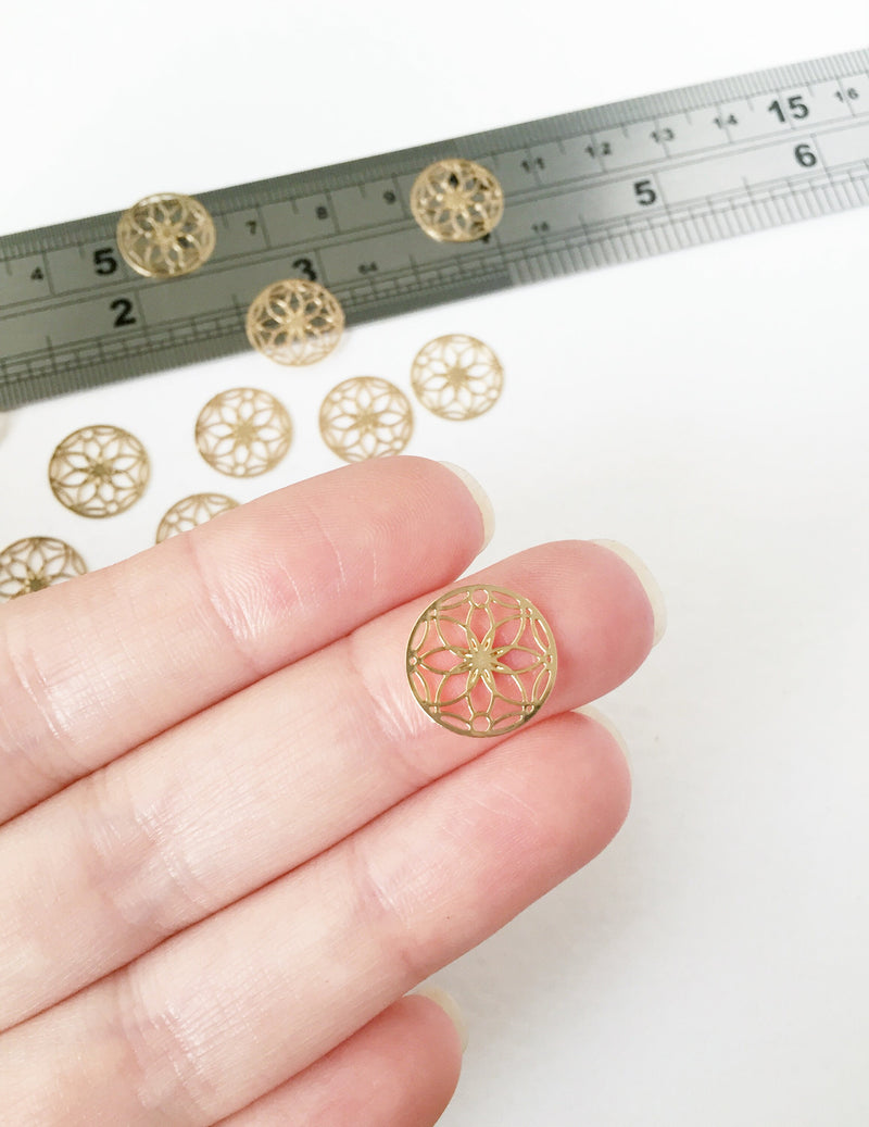 10 x Gold Plated Brass Filigree Flower Links, 13mm (0295)