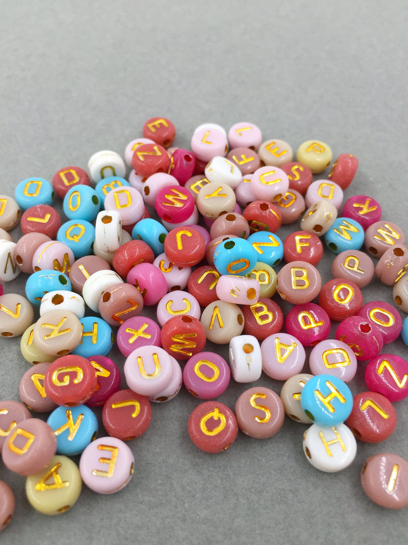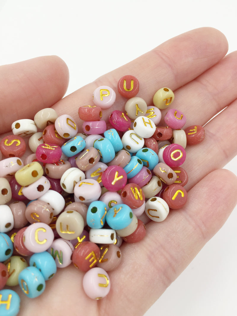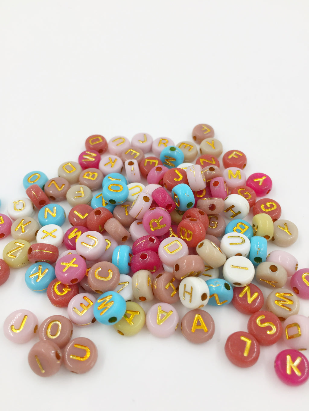 ✨ Acrylic letter beads, opaque colourful beads with gold letters