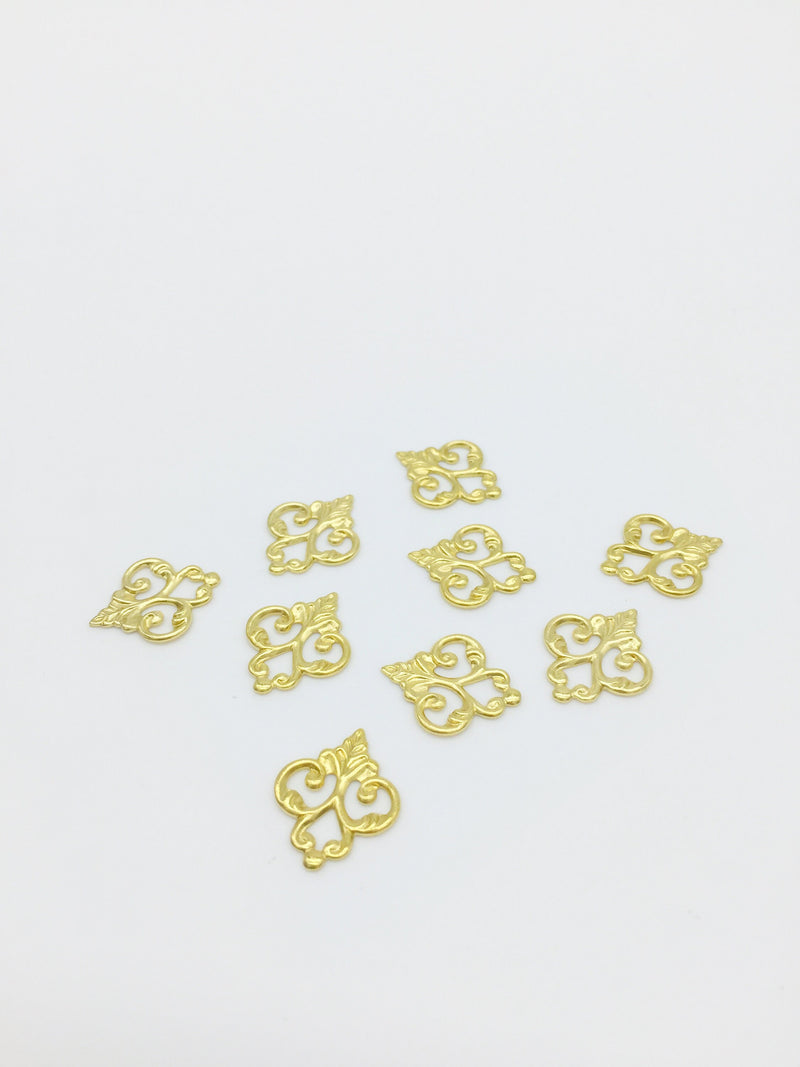 12 x Raw Brass Filigree Blanks, 16x13mm Gold Tone Filigree Embellishments (2855)