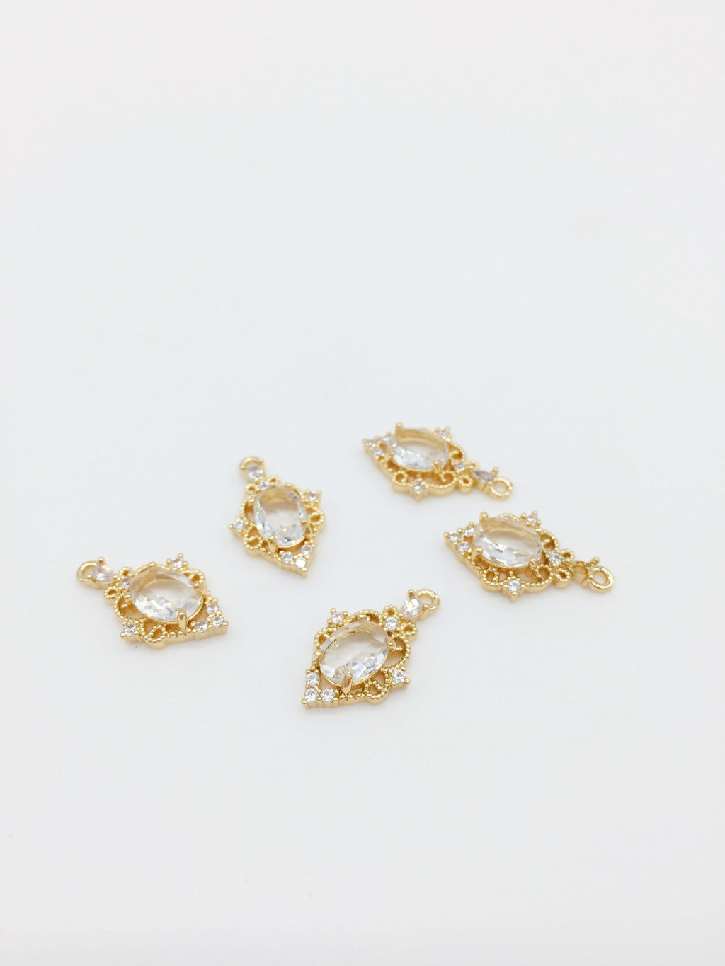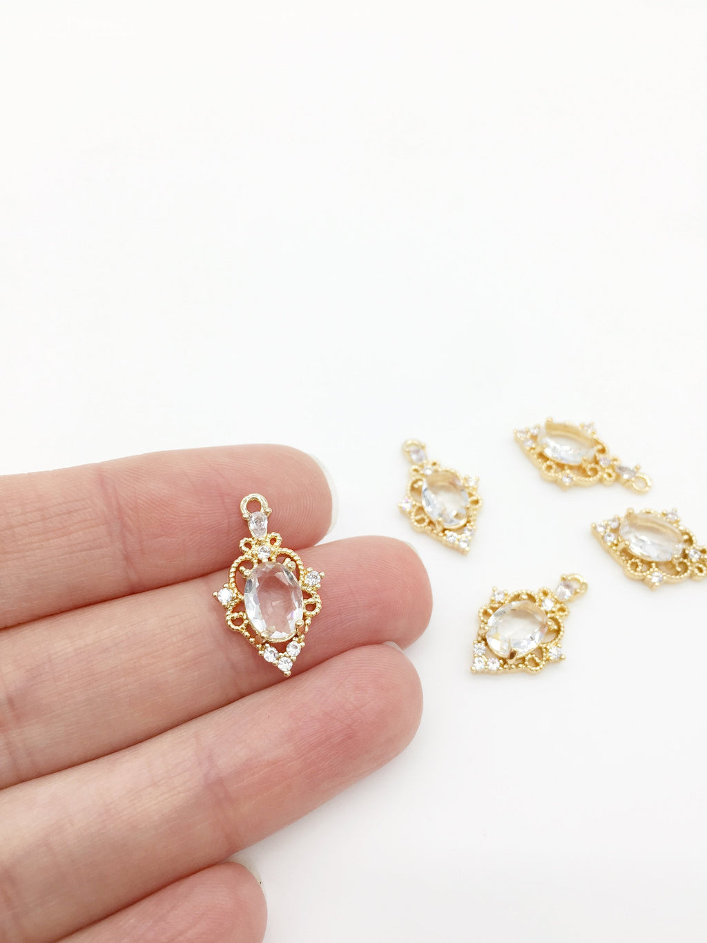 1 x 24K Gold Plated Vintage Style Cubic Zirconia Drop Pendant, 20x12mm (1588)