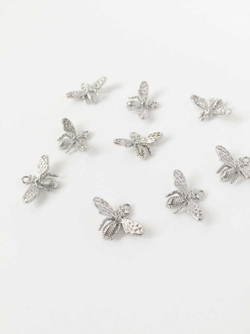 1 x Real Platinum Plated 3D Bee Charm, 10x14mm (1981)