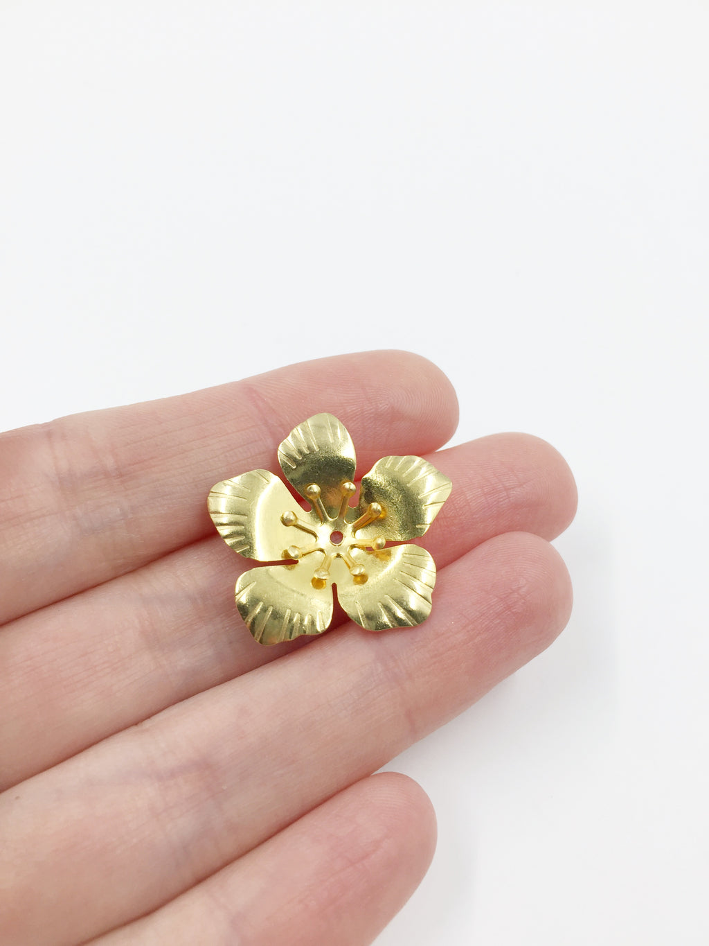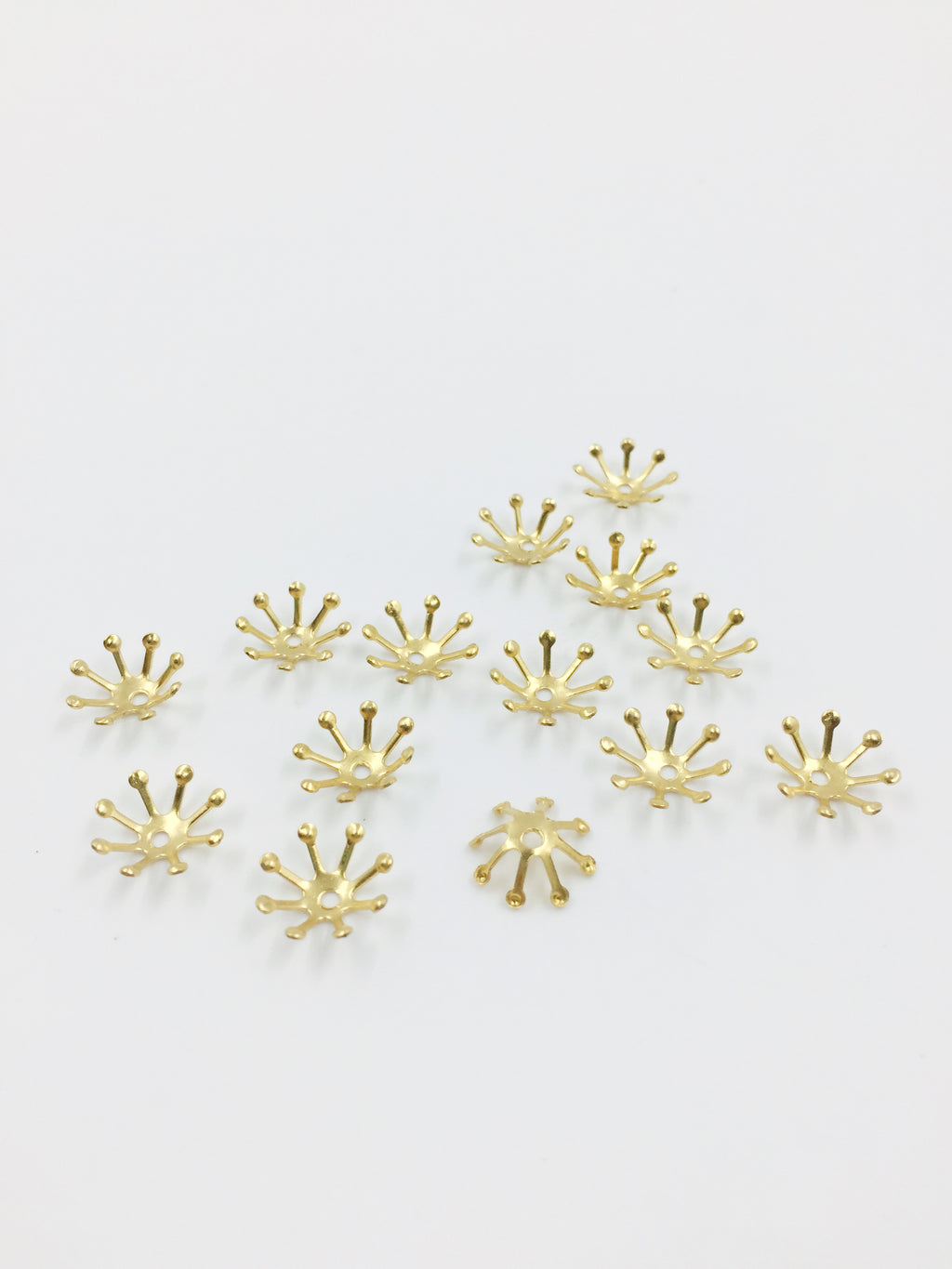 20 x Raw Brass Flower Stamen Bead Caps, 10-11mm (1769)
