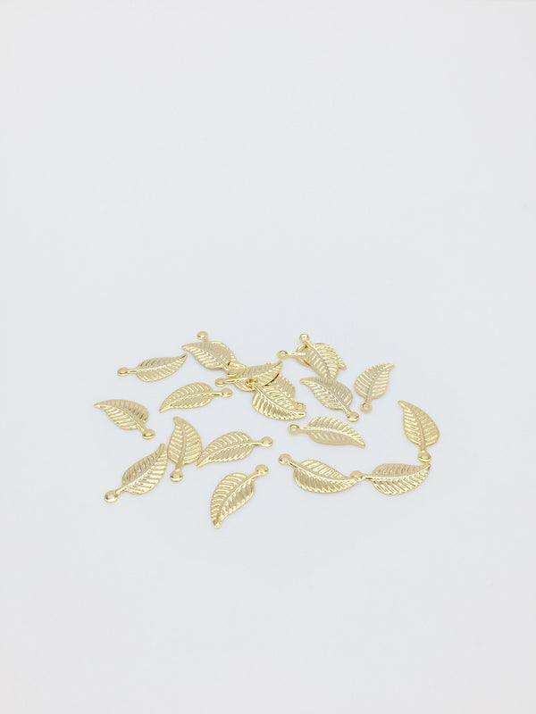 25 x Tiny Gold Textured Thin Leaf Charms, 4x7mm (0091)