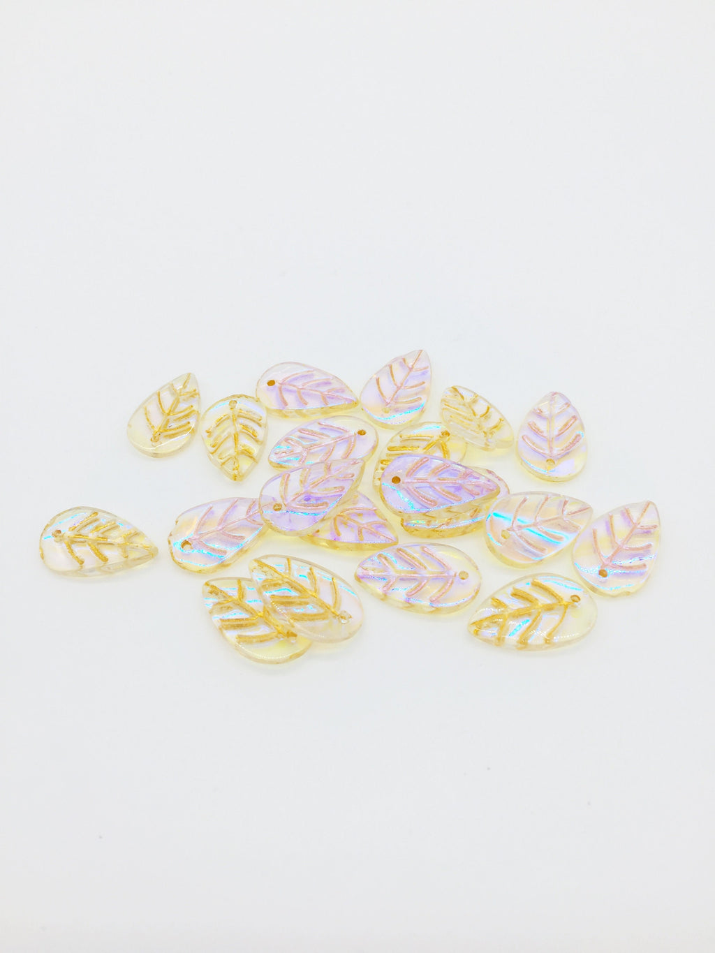 20 x Iridescent Glass Leaf Beads, 11x18mm Glass Leaf Charms