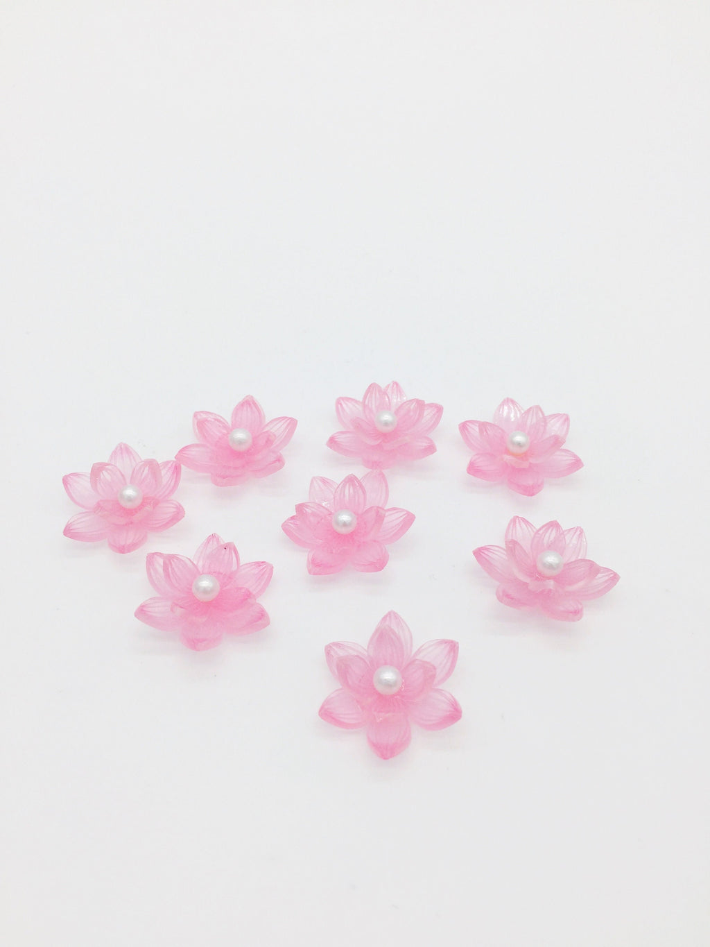 ✨ 3D acrylic lotus flower cabochons with white pearl centre